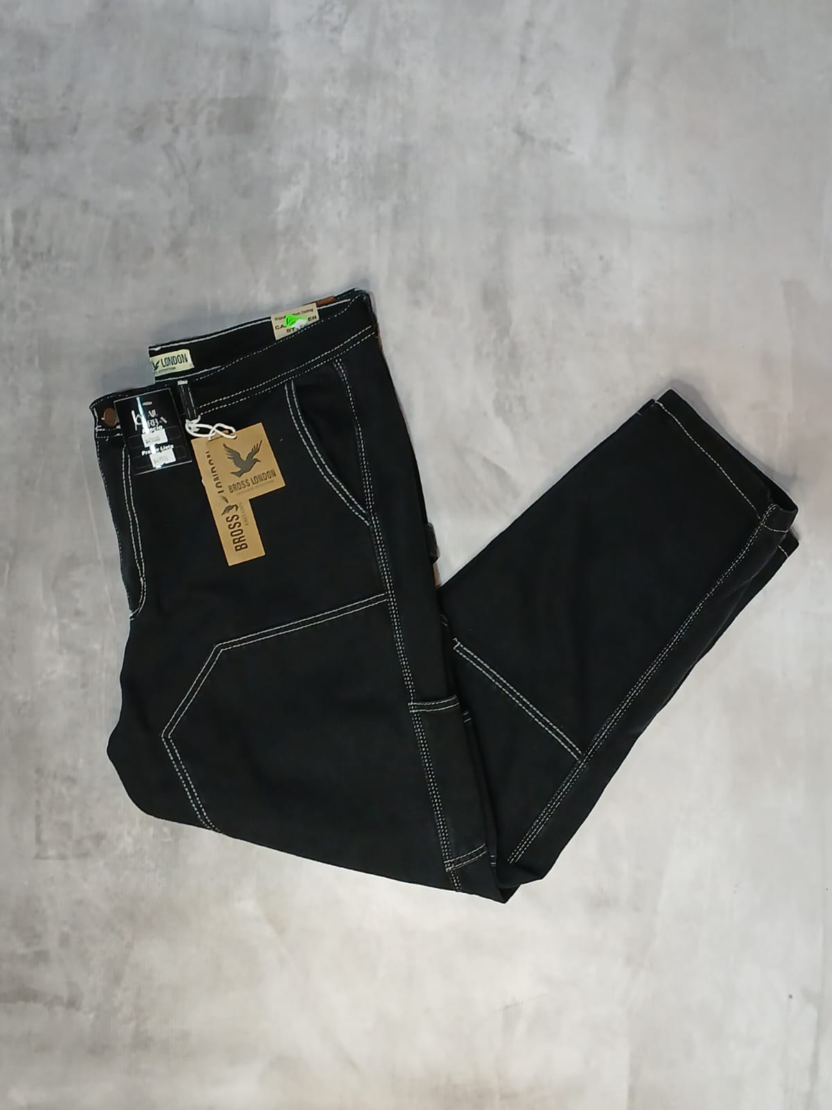 Carpintero Bross Negro con Costura Blanca